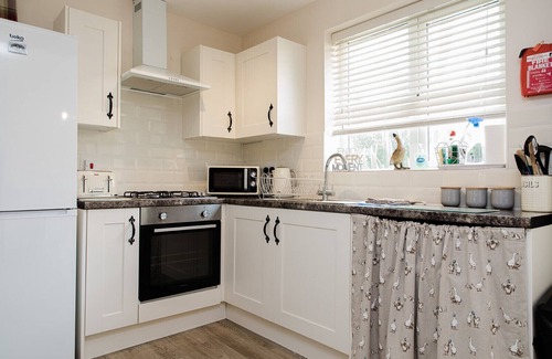 Mallards View has a cosy, open plan living area. The room is inviting with French doors opening to a small decking area for those summer mornings or evening drinks. The kitchen area is equipped with an array of cooking utensils and appliances for all your cooking needs. There is a washing machine to clean your clothes after your muddy walk or your trip to the beach. It has a smart TV and comfortable sofas.