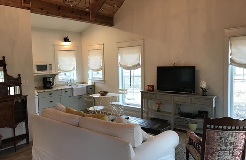 Great new property situated in the middle of Boerne. Very secluded and surrounded by huge oak trees. Easy walk to Main Street (6 blocks). The Old Depot Walking Trail is a half block away. Take the trail East to Cibolo Creek or West to Bumdoodlers Pies! The Depot Cottage was newly built in Dec 2016 out of Hill Country limestone. It is modeled after the Old Nature Center Historic Building on Main Street. Depot Cottage is located on a street that used to be named Depot Street and housed the Boerne Depot Station. It is beautifully decorated with antique furniture and has all the modern amenities as well (WIFI is included). The three acre property is gated and there is a small fenced in grass area to keep pets safe. You will see whitetail and axis deer on the adjoining properties. Enjoy all the convenience of downtown Boerne while feeling like you are secluded in the Texas Hill Country.