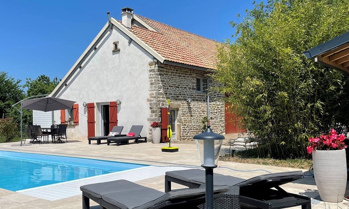 A gorgeous, well-equipped cottage with private parking and shared access to heated swimming pool and sun terrace, sleeping up to 5 people. WiFi provided. Close to Beaune, Dijon, Autun, Chateauneuf and the Canal de Bourgogne!