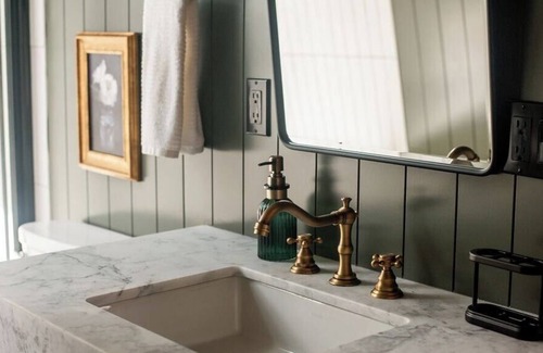 There is one full size bath on the lower level that is stocked with hand soap, shampoo, conditioner, and body wash. All towels are freshly-washed right before your stay. There is a tub and shower combo that has a foldable door to make bath time a breeze for kiddos!