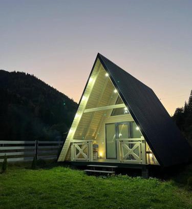 This property offers access to a terrace, free private parking, and free Wifi. Outdoor seating is also available at A frame house Kryvorivnia. The chalet consists of 1 bedroom, a living room, a fully equipped kitchenette with a microwave and a kettle, and 1 bathroom with a walk-in shower and slippers. Towels and bed linen are offered in the chalet. This chalet is allergy-free and soundproof. The chalet has a picnic area where you can spend the day outdoors.