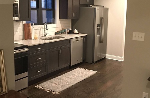 This is NEW construction and was originally built as an in-law suite. This is a VERY nice, upscale, well-apportioned apartment. Please don’t let the ‘garage apartment’ descriptor mislead you. NOTHING in this unit is ‘contractor grade’!
