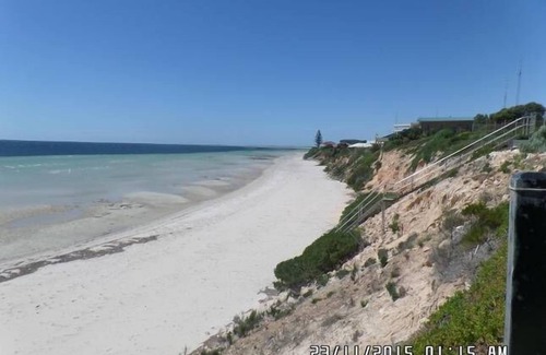 Absolute uninterrupted views over the beautiful Simms cove all the way to Moonta Bay. On the ground floor there is an open plan kitchen, dinning, lounge, with large well equipped laundry, with water efficient Bosch washing machine and energy efficient dryer. There is also a powder room downstairs with the 3rd WC. A well appointed kitchen has dishwasher, oven, microwave, plenty of storage and large walk in pantry. All the cooking implements you may need. Plenty of electrical appliances (slow cookers, sandwich press, electric fry pan, etc) so you can cook up a storm if you wish. The dining room has custom made beech wood and leather seating for 6 with a beautiful crackle topped table from Italy. The lounge 7 seat leather lounge. Music station with CD and Ipod access. Walk straight out of the lounge room sliding doors to the yard where you have direct access to the beach via private stairs to the beach or just grab a chair and sit and relax with one of the best views in Moonta Bay.