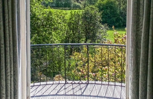 There are seven bedrooms, five of them very large with super king-sized double beds, along with two smaller twin rooms. The master bedroom has its own private balcony looking over the treetops towards the River Wye, and three other bedrooms also have balconies overlooking the garden and with stunning views down the Wye valley.