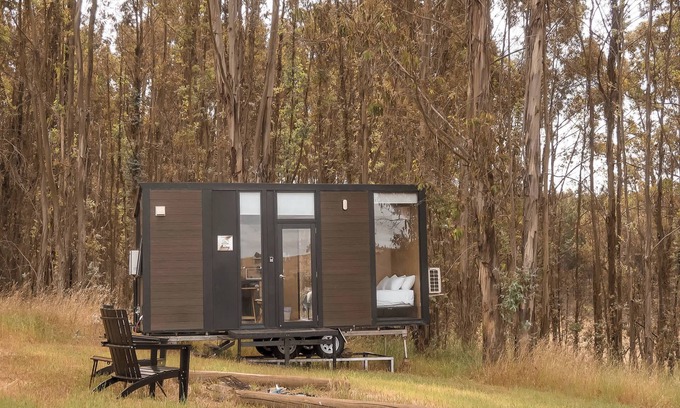 This tiny home is perched on the edge of a serene blue gum forest, offering stunning views of the expansive pine forest nearby. It's one of the best holiday homes in Western Australia, located close to towns like Balingup, renowned for its Annual Medieval Carnivale, held on the last weekend of August. In addition to this event, Balingup offers local cafes with excellent coffee and a welcoming atmosphere.