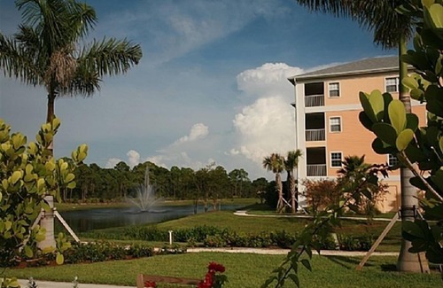 Our beautiful condo has two bedrooms and two bathrooms. The kitchen is upgraded and includes granite countertops and custom wood cabinets and has all the cooking amenities of home. It can sleep 4-6 people very comfortably. There is a queen bed in the master bedroom and a queen bed in the guest bedroom as well as a pull out full sofa bed . The bathrooms are upgraded and have granite countertops, as well as custom wood cabinets. There is also a full size washer and dryer. The entire unit has been custom decorated and setup to give our guests a relaxing and peaceful Florida vacation The condo overlooks the community lake and fountain. One of the most relaxing things to do is to sit on the large screened lanai. There are beautiful views of the lake from the lanai and master bedroom and livingroom.