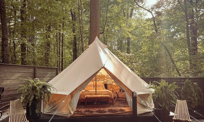 A luxurious glamping tent nestled in the trees. | House in Denver