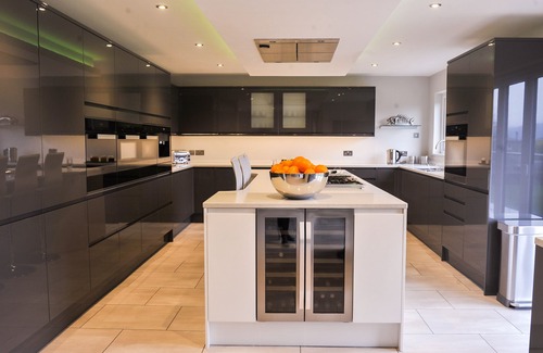 The open plan design provides access from the living and dining areas into the truly impressive kitchen area. The kitchen area is some 30 square meters and provides everything that a modern kitchen should have. With fully integrated Miele appliances comprising of two fridge freezers, steam oven, compact combination oven, microwave, coffee machine, 4 warming draws, red wine chiller, white wine chiller, 5 ring gas hob with wok burner, ceiling extractor system full sized combination oven, Dualit toaster, Breville sandwich maker and numerous other hand held electric accessories and a full range of pans any chef, professional or not, will have no problem preparing any dish.