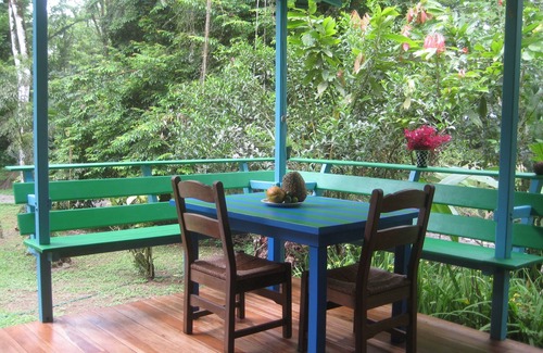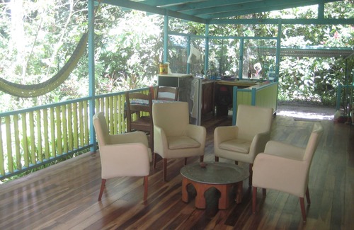 Finca El Tucan is a paradise for nature lovers and people who want to enjoy the tropical flora and fauna in a relaxed atmosphere. The house is surrounded by impressive trees and colorful tropical plants and has space for 2 to 5 people. The property has private trails along a river and through the jungle, which invite for exploring walks. Toucans, monkeys, sloths and iguanas are often seen. The huge terrace has a kitchen, dining and leisure area which provides you with chairs, tables and hammock. The beach, a supermarket and several restaurants is within walking distance.