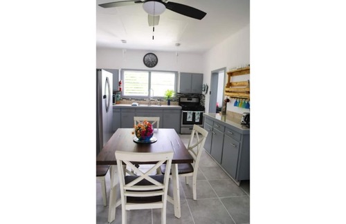 Cute 2/1 apartment located on the north side of St. Thomas within walking distance to Hull Bay Beach. Spectacular views, open and airy, with parking and laundry. Only the two bedrooms have A/C however it does get a nice ocean breeze throughout the home most days. The two twin beds can be converted into a king bed if preferred. Queen air mattress and pack n play available upon request! Don't miss out on this sweet Northside gem.