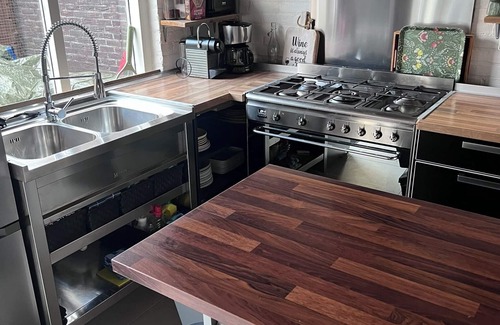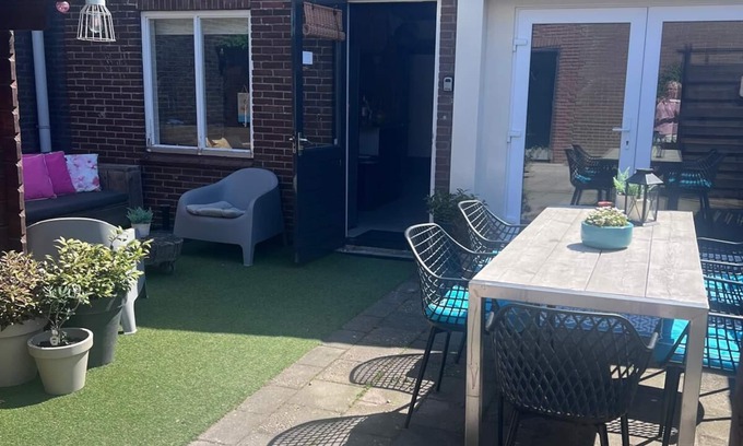 The holiday home is located behind the owner's house. It is completely private with its own garden and terrace. The holiday home (90 m2) is entirely on the ground floor. The kitchen, sitting area and dining area are in one large room. The toilet and shower are in a separate room. The kitchen has a large 5-burner gas stove with oven, dishwasher, microwave and large refrigerator. At the back of the house there are two bedrooms with blackout roller blinds. The first sleeping area has a large double bed, the second sleeping area has two single beds and a trundle bed. This bedroom can therefore be equipped with three full beds. There is also a possibility for an extra baby bed. They are two separate bedrooms, each with its own entrance door. There are all single duvets. Due to the two separate bedrooms, the space is also ideal for two couples, for example. Parking is free in the street or the surrounding streets.