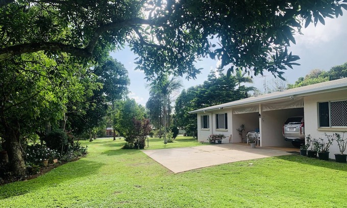 A private and secluded unit on the outskirts of Atherton. Birds, possums, and Boyd Rainforest Dragons are but some of the experiences you may enjoy. The unit is one of two set on a one acre property. Willy Wagtails are treated to regular feedings of Meal Worms which is quite entertaining, while dozens of finches flock around the bird feeders. Quiet, yet centrally located to Atherton, the property hosts over 20 avocado trees of various varieties. The unit is of a three star standard, with good amenities and is clean and comfortable. The kitchen is well equipped and there is a laundry with washing machine and dryer. The selling point of this property is the space, the gardens and orchard, exclusive use, fire pit, the birds and wildlife. And its central location on the Atherton Tablelands. Meals can be provided if required, and a small webber is available for you to use. Whether you might enjoy a few chats while you stay, or prefer your privacy, it would bring me lots of pleasure to share my 'little piece of paradise' with you. Di
