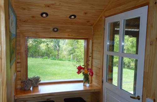 GRATITUD is a cozy bright cabin facing east, overlooking the interior valley of the peninsula San Pedro.