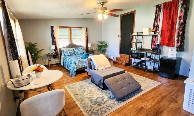 Access to free WiFi, full bathroom, kitchenette, and a beautiful patio with free driveway parking.