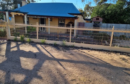 The cottage sits back on its own surrounded by grass and native trees. It is fully fenced with views from the cottage variously of the setting sun, old mining buildings and a large original Methodist church built at about the same time as the cottage which is approximately 1860. Just a little bit further and within walking distance is a lovely old sweet shop, a railway station that runs a miniature train ride around the old mine site and the Moonta Mines Museum which was the old Moonta Mines school.