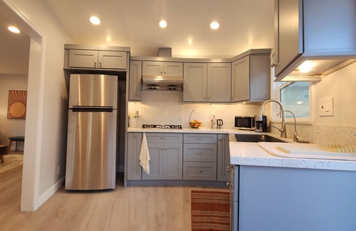 Nestled within a quiet and peaceful courtyard full of fruit trees, this detached, bright guest home offers ample backyard space perfect for relaxation. Recently remodeled, it features two cozy bedrooms, one bathroom, and a kitchen with new appliances. As your second home, this house welcomes you fully furnished with the comfort of AC and heater in every room.