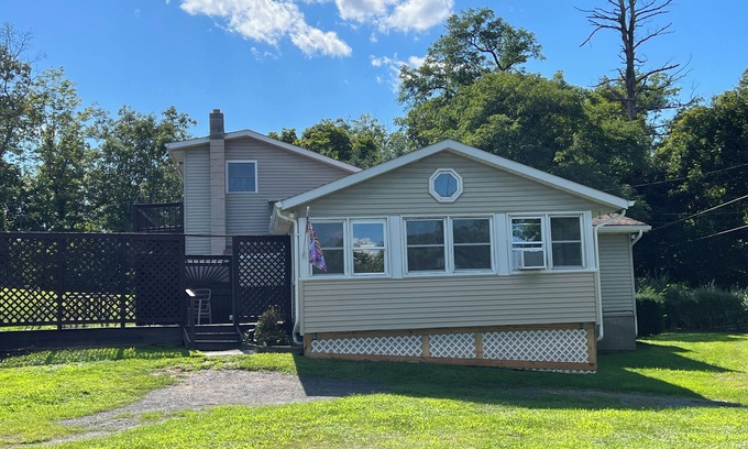 Your Hudson Valley adventure begins at this delightful 3-bedroom house. With 2 queen beds and 1 twin bed, this gorgeous property offers a cozy retreat for guests. One queen bedroom with 1/2 bath upstairs with wrap around deck. Enjoy the superb amenities including heating, WiFi, AC, and a full kitchen. Kitchen has serving dishes, large assortment of pots and cookware. Stand mixer, drip coffee pot, toaster, microwave, dishwasher, and wine glasses. Unique floor plan. Outdoor multi level decks. House has 20’ x 20’ unheated sunroom, facing east, for enjoying your morning coffee while soaking in the morning sun. Full laundry facilities and an extra refrigerator. Fire pit available and can be used anywhere in the yard. BBQ grill available also. We look forward to welcoming you to our place. Near HITS on the Hudson, Rhinebeck Fair Grounds, Ulster County Fair Grounds, Hiking, Kaaterskill Falls, Woodstock, Phoenicia, Rhinebeck, Hunter Mountain Ski Area, Windham Ski Area, Saugerties Light House Lake Taghkanic State Park. No smoking on the property inside or outside. No parties.