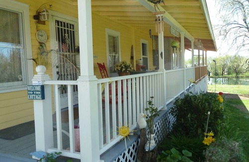 Our lovely 8-acre vineyard and charming 2000 square feet, 2-bedroom guest cottage, are a treasure! Newly remodeled, the 'Grand Suite' will spoil you and your honey rotten! Get ready to relax in the fanciest 'retro' bathroom in town! Enjoy the convenience of having the whole-house to yourself, including a fully stocked kitchen. But who wants to cook when you can.......barbecue outside on the gas grill! Clean up quick so you can romance your honey on the porch... or lay-out on the private deck! Walk the vineyard to witness breath-taking views of Mt. Adams, as the sunsets. Tour Yakima's Premiere Wine Country. Sunland's Cottage is ideal for couples visiting Yakima on a weekend-getaway or a vacation! Conveniently located all within 3-15 minutes from most of Yakima's hotspots! (P.S. if you are allergic to animals, this is NOT your place! Also, since the cottage is situated on a working farm, expect to see crew polishing, priming and pruning the grapes during your stay, all in service to the fall grape harvest!)