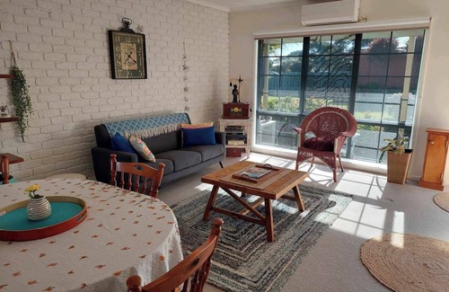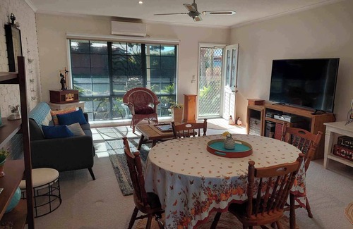 A very unique stay amongst beautiful gardens: Easy quick access on and off the Island. Close to local shops, San Remo, short walk to the beach and all the serenity Newhaven has to offer. This bright, North facing, comfortable unit boasts a relaxing beach feel. The main bedroom has a comfortable queen bed and the other a double.