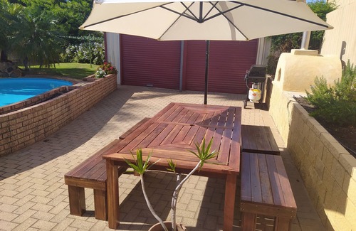 Guests can share use of our 60,000-litre palm-fringed pool and outside dining area.