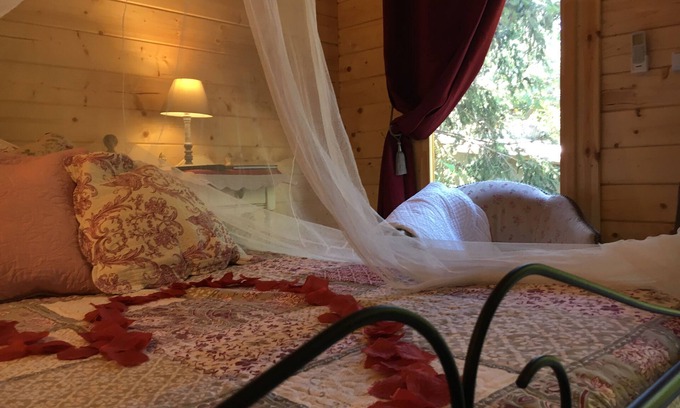 A romantic garden hut with balneotherapy is located in Barjols. A romantic garden hut with balneotherapy provides accommodation, featuring Internet, Parking, TV, among other amenities. This Cabin features Internet, Parking, TV, to make your stay a comfortable one.