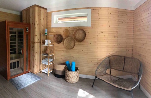 A romantic private escape into nature for couples Hot tub + Sauna + Yoga Studio is located in Sunshine Valley. A romantic private escape into nature for couples Hot tub + Sauna + Yoga Studio provides accommodation, featuring Laundry, Air Conditioner, Pet Friendly, among other amenities. This Cabin features Laundry, Air Conditioner, Pet Friendly, to make your stay a comfortable one.