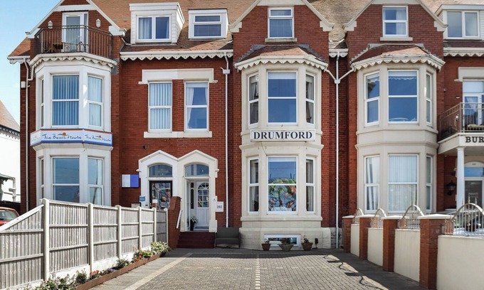 Bedroom 10: Super Kingsize (6ft) Bed Ensuite: Cubicle Shower, Toilet. Gas central heating, electricity, bed linen, towels and Wi-Fi included. Travel cot and highchair (available on request). Private parking for 8 cars. No smoking. Please note: There are 5 steps in the garden. Sorry no hen or stag parties, couples and family bookings only.. This charming bed and breakfast can be found nestled on the main promenade at the start of the infamous Blackpool illuminations, across from picturesque Bispham Beach. Drumford can comfortably accommodate up to 19 guests across 10 cosy bedrooms, of which 7 benefit from convenient en-suites. Self-serve continental breakfast can be included as part of the stay (charges apply), and with access to the well-equipped kitchen, you can also whip up additional meals should you wish.