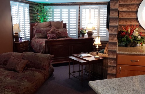 Identity verification and credit check required before check in. This newly remodeled and decorated Log Cabin Loft is warm and cozy for travelers to find an amazing respite in the middle of Bakersfield, California... We are conveniently located behind our place of business between 2 major freeways and close to Rabobank Convention Center. We are committed to seeing you and your family have a five star experience. We invite you to book this hidden treasure in Bakersfield, California.