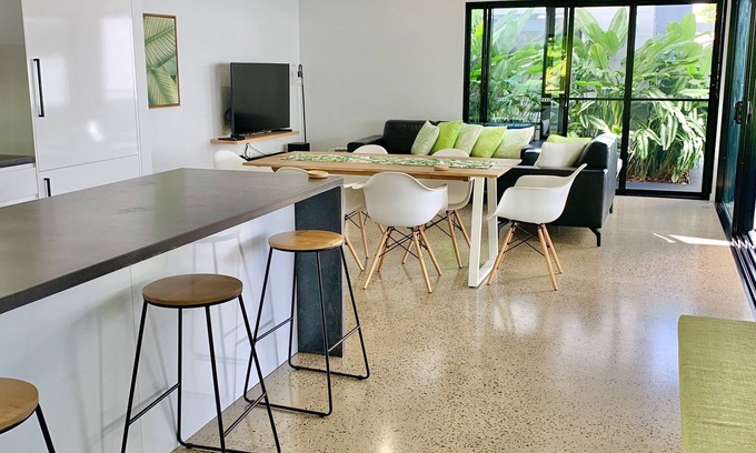 Litoria Mission Beach is a pavilion home located in the beachside village of Mission Beach. Tucked against reserve and less than a minutes’ walk (about 150m) from the beach, you’ll experience the best of both worlds when you stay at Litoria. Kids love the free splash pad, playground, skate park and basketball court just a 5–10min walk away. Ask us about our free passes to the Mission Beach Aquatic Centre with billabong, lap and hydrotherapy pools and kids splash pad.