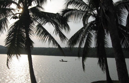 the villa is located 100 meter from the freshwater lake Vellayani and in front of a coconut plantation.