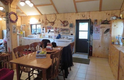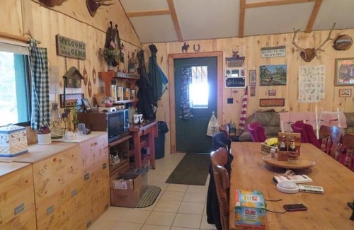 The cabin is powered by gas with generator if needed and has a kitchen with a gas powered refrigerator, coffee pot, microwave, stove and outdoor gas grill.