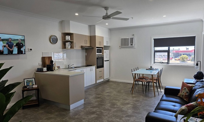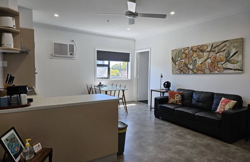 Aart Apartments are conveniently located in the heart of Port Lincoln, within walking distance of bakeries, café, restaurants, grocery stores and shops. 1 minute walking distance to Port Lincoln's stunning foreshore beach and lawns. Free private parking is available on site and free 5G Wi-Fi, Express self check in and keyless entry.