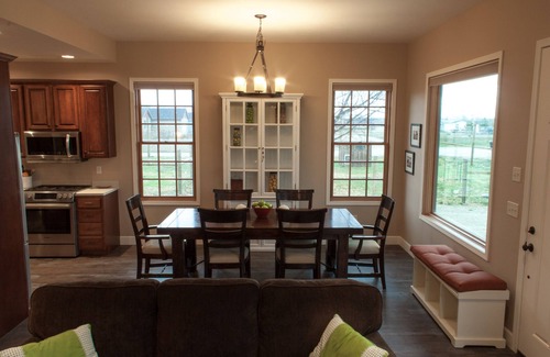 The Gate House is situated towards the back of the farm property. Occasionally farm staff will be witnessed coming and going throughout the work-day, but otherwise the location sees little vehicle activity. Pin Cherries and Oak Trees line the drive on the east side. As a guest of the farm, and from the comfort of the East & South facing locals, you may witness farm staff running pasture irrigation, tractors navigating pastures, chickens and cattle roaming, elk & deer grazing at dusk and so much more. It is these on-farm experiences that give staying at the Gate House its charm.