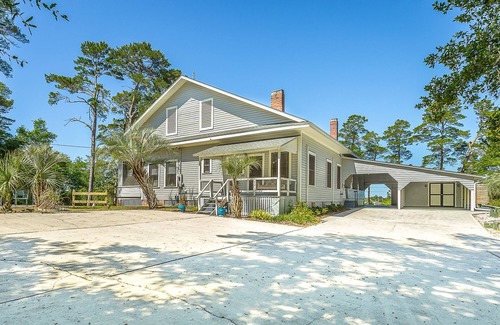 Above & Beyond is a historic treasure located in downtown Carrabelle on top of Carr's Hill with one-of-a-kind views of Carrabelle Harbor. This 2BR/2BA has a open floor plan and has original features from the 1900's including exposed brick chimneys and original mill work which you will see in the heart pine-coffered ceilings and herringbone walls in the living room and dining room. A large, open kitchen with modern appliances and fully stocked to cook a home cooked meal if you wish. This home will sleep 5 comfortably with a king size bed in the master room and en-suit bathroom, as well as a river view. The second room has a queen bed and a twin bed. The wrap around, covered porch is the perfect place to relax in the evenings while watching the sunset and boats roll in from the bay. This notable home has a large, private yard and is within walking distance to downtown shops and restaurants.