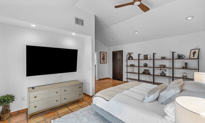 Guests have private access to the entire pool villa and share access to the private resort-style yard with its lush gardens, courtyards and heated pool. Guests also get free fast Wi-Fi, complimentary coffee/tea, bathroom amenities and access to streaming apps on the smart TVs.
