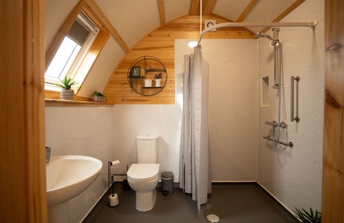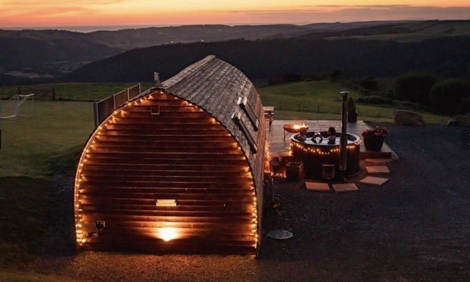 Our accessible Wigwam cabin sleeps up to five people, has a private wood-fired hot tub, and boasts some of the best views in Wales from a glamping pod.
