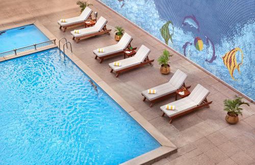 Food & DrinkMinibar, Bottle of waterBathroomFree toiletries, Walk-in shower, Private bathroom, Shower, Slippers, Body soap, Toilet paper, Shampoo, Hairdryer, Bidet, Toothbrush, Shower cap, Toilet, TowelsGeneralCarpeted, Trash cans, Key card access, Air conditioning, Safe, Smoke Alarm, SoundproofMedia & TechnologyTelephone, Cable channels, Flat-screen TV, TV, Satellite channelsLiving AreaSofa, DeskServicesWake-up serviceKitchenElectric kettleBedroomLinens, Wardrobe or closetViewCity view, Pool viewAccessibilityAccessible by elevator, Entire unit wheelchair accessible, Upper floors accessible by elevatorRoom AmenitiesSocket near the bed, Non-feather pillow, Clothes rackExclusive servicesFree gym access, Concierge servicesCleanliness & disinfectionHand sanitizer |
