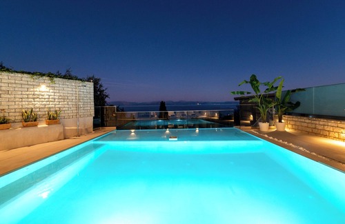 Achillion Luxury Corfu Villa & Suites is found in Perama on the island of Corfu, a beautiful, quiet area with a magical view from the Ionian Sea, 7 km from Corfu International Airport, 9 km from the centre of Corfu Town and very close to famous Pontikonissi. Achillion, perhaps Corfu’s most im-portant monument and among Europe’s most famous royal mansions, is a 5-minute drive away.
