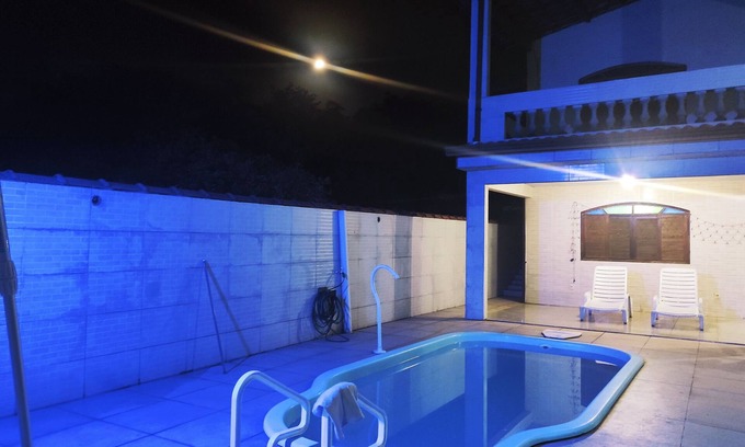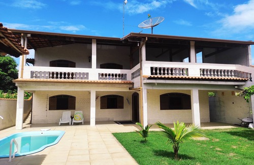 Spacious fully furnished ground floor house with 3 bedrooms, 2 living rooms, 1 full kitchen, 4 bathrooms, fan, TV and radio. Aerial with pool and barbecue. Within a condominium with court structure, playground and pool. 8 minute drive to the beach. It is between Ponta Negra and the center of Jacone. 15 minutes along the edge of Saquarema. Ideal place for big family and friends with lots of fun.
