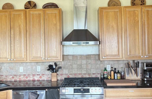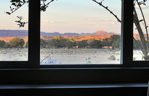 Magnificently sited on 53 acres. Horse barn, corral, pasture, alfalfa fields. Great views from every room. Fully equipped kitchen, recently upgraded. Comfortable dining area for 6, living room with fireplace, conversation area, dual CD and wifi sound system, library with TV, game room with mini-billiards table, chess. 2 BRs, each with fireplace, private bath. Bedroom 1, king-sized bed, desk, Capitol Reef sunrise view from bed. Bath has double sinks and walk-in shower, also with views! Beyond, a walk-in closet with washer and dryer. (Another washer/dryer in utility room.) Bedroom 2, two twin beds put together to make king. En suite bathroom. Both BRs very large. Perfect for 2 adult couples traveling together. Each has privacy but lots of common space. Owner's bedroom won't be occupied when you are there and kept locked. But available by special arrangement. Library well-stocked with novels and art books. Eclectic and interesting art collection including Chinese scholars' rocks and photographs. Views are the most staggering works of art, and all windows designed to frame them. BBQ available. Ping-pong table in garage. Great base for exploring one of the most beautiful, least spoiled areas of America. Excellent management by April Morrison. Perfect for family gathering. Florida-based owner's summer home, only available October through May, which includes some very beautiful times. Snow is rarely deep. Good hiking. Magnificent night sky all year round. A place for people who appreciate beauty in art and nature, especially lovely in winter and well-laid out for Thanksgiving, Christmas celebrations.
