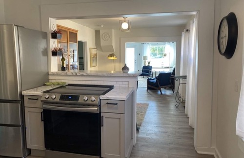Entire house, recently updated, single floor plan, sleeps four , two bedrooms , one with a king bed and one with a full size bed, washer and dryer, private parking