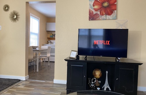 There is high speed wifi throughout the duplex. There is a TV with free Netflix provided and access to local channels with an antenna. There is no cable.