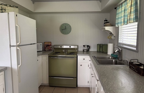Adorable cottage with beautiful outdoors. Large open concept studio with queen bed, full size sofa bed, fully stocked kitchen with full size appliances, covered parking, satellite TV, coffee, and tea provided. The bed and living area are shared space Cottage is located behind main residence with self check in and check out ease. Outdoor dining can be enjoyed on the porch or enjoy sitting in covered gazebo swing. It is our desire to bless travelers with a comfortable and affordable place to stay.