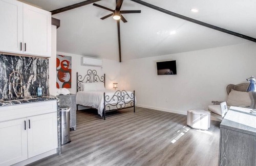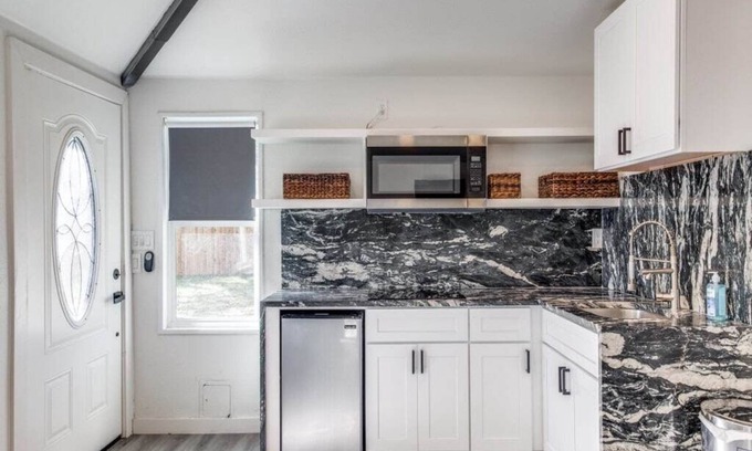 Located right at Hillcrest/Walnut Hill, this wonderful guest house is the perfect place to stay while you are in Dallas. Featuring a single large room with a small kitchenette, desk for work, a queen bed and full bathroom, this has everything you need for a comfy stay. The best part is that it has a dedicated fenced yard (separate from main house yard) and parking right outside so you'll never see anyone in main house. The main home is rented out too on Airbnb.
