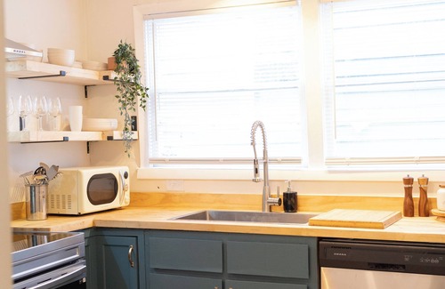 Welcome to The Llama! This is the bottom unit of a duplex. Backyard and driveway are private to this unit, both units have separate entrances. An uniquely designed and furnished 2 bed/1 bath unit. With two comfy Zinus King beds you will be sure to have a great night's sleep, ready for the day ahead. The home offers a full kitchen with BRAND-NEW stainless-steel appliances including a fully stocked kitchen. The comfortable living room and dining nook make for a great cozy night in.