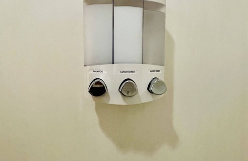 ‒ Bathroom stocked with shampoo, conditioner and lotion