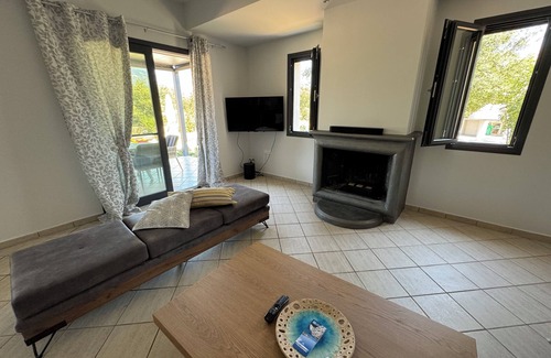 Boasting pool views, Aetheria Villa Kefalonia features spacius modern stay for families and kids, around 2.9 km from crystal clear water beaches. This holiday home features a private pool, a garden, barbecue facilities, playground, large colorful flower and tree garden, sunny and shady spots to enjoyful resting, free Wi-Fi free A/C and free private parking. The property is allergy-free and is situated 2.9 km from Monastery of Agios Andreas Milapidias.