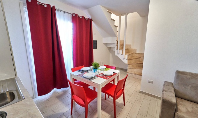Holiday house in Isola Rossa !!! Brand new apartment a stone's throw from the sea, in an area served by every comfort. Two-room apartment on two floors, sleeps 4, in a quiet residence 200 meters from the beach. Fully furnished and equipped, with equipped kitchen, living room with sofa bed, double bedroom, bathroom, large fenced veranda and balcony. Equipped with air conditioning, fridge, oven, stove, TV, washing machine, iron and hairdryer.