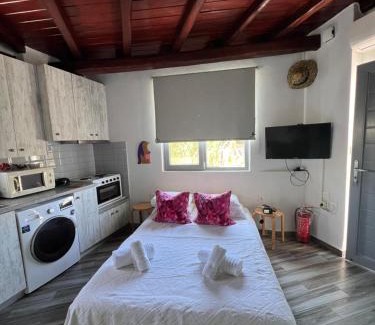 Food & DrinkTea/Coffee maker, Chocolate/Cookies, Bottle of waterBathroomConditioner, Toilet paper, Toilet, Hairdryer, Towels, Private bathroom, Shampoo, Free toiletries, Body soap, Bathtub or shower, ShowerMedia & TechnologyFlat-screen TV, TV, Streaming service (like Netflix)GeneralCarbon monoxide detector, Heating, Fire extinguisher, Soundproof, Key access, Air conditioning, Smoke Alarm, Ironing facilities, Private entrance, Iron, Tile/Marble floor, Trash cansKitchenRefrigerator, Kitchenware, Coffee machine, Kitchen, Microwave, Stovetop, Washing machine, Wine glasses, Dining table, Oven, Toaster, Electric kettle, Kitchenette, Cleaning productsLiving AreaDeskOutdoorsTerrace, Patio, Outdoor furnitureViewInner courtyard view, Garden view, ViewBedroomLinens, Wardrobe or closetAccessibilityEntire unit located on ground floorBuilding CharacteristicsDetached, Private apartment in buildingRoom AmenitiesClothes rack, Socket near the bed, Sofa bed, Non-feather pillowPhysical distancingSingle-room AC for guest accommodationCleanliness & disinfectionHand sanitizer |