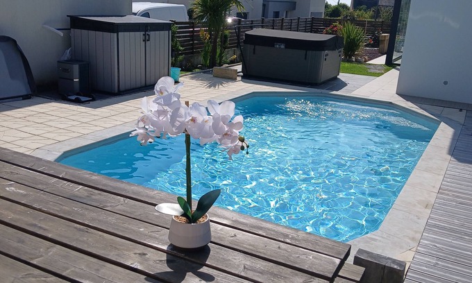 Agréable Maison en Bois Avec Piscine, Spa, Sauna en Bord de mer | House in Le Conquet